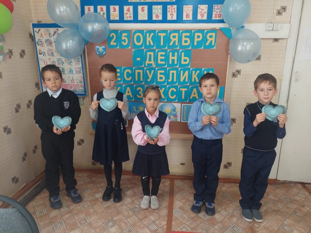 В КГУ "Основная средняя школа села Шойындыколь" в 1 классе прошел классный час посвященный Дню Республики Казахстан. Классный руководитель Горбакова Т.А.