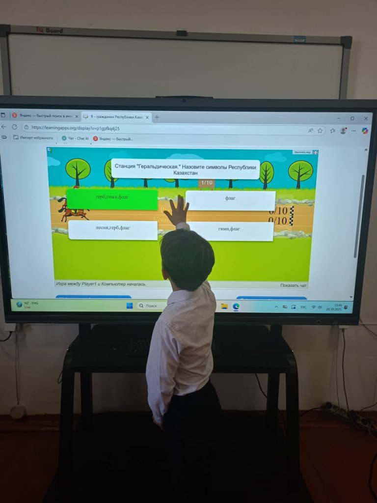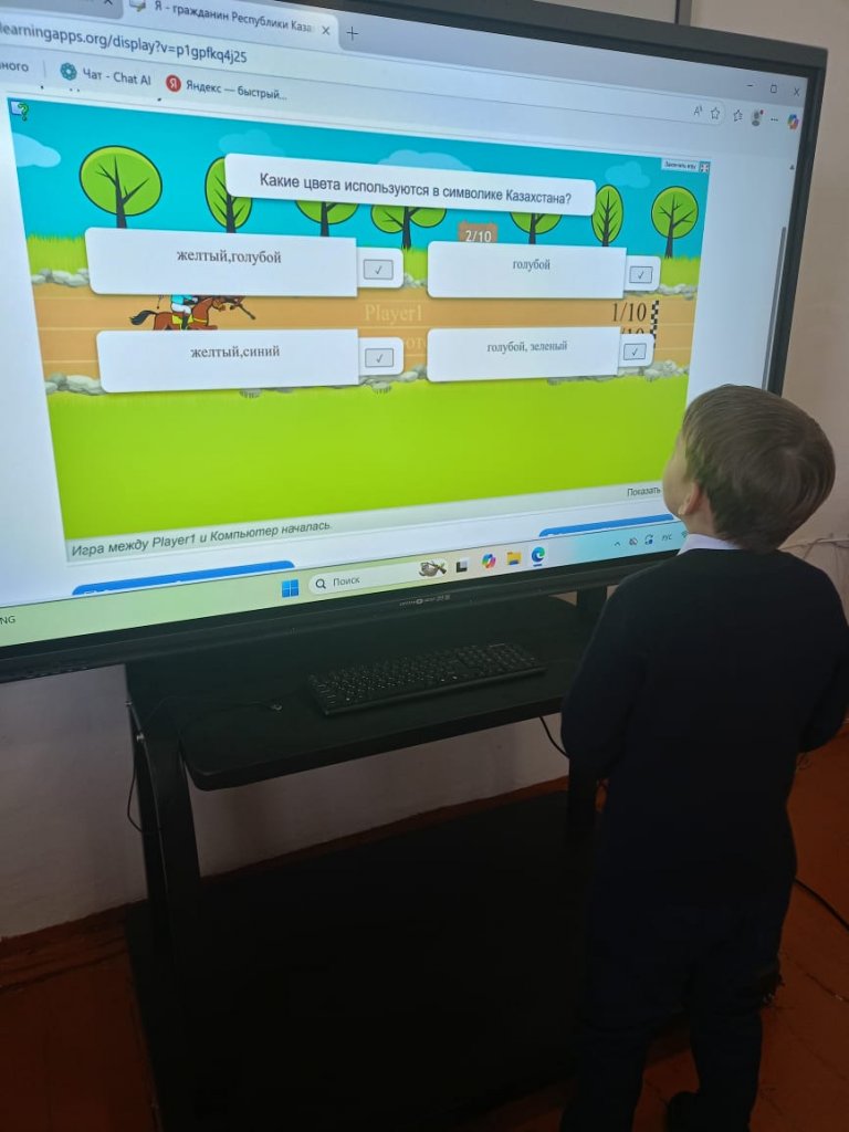 Мақсаты: Оқушыларды Қазақстан Республикасы азаматының мемлекеттік рәміздерімен, мәдениетімен, тарихымен және құқықтарымен ойын түрінде таныстыру.