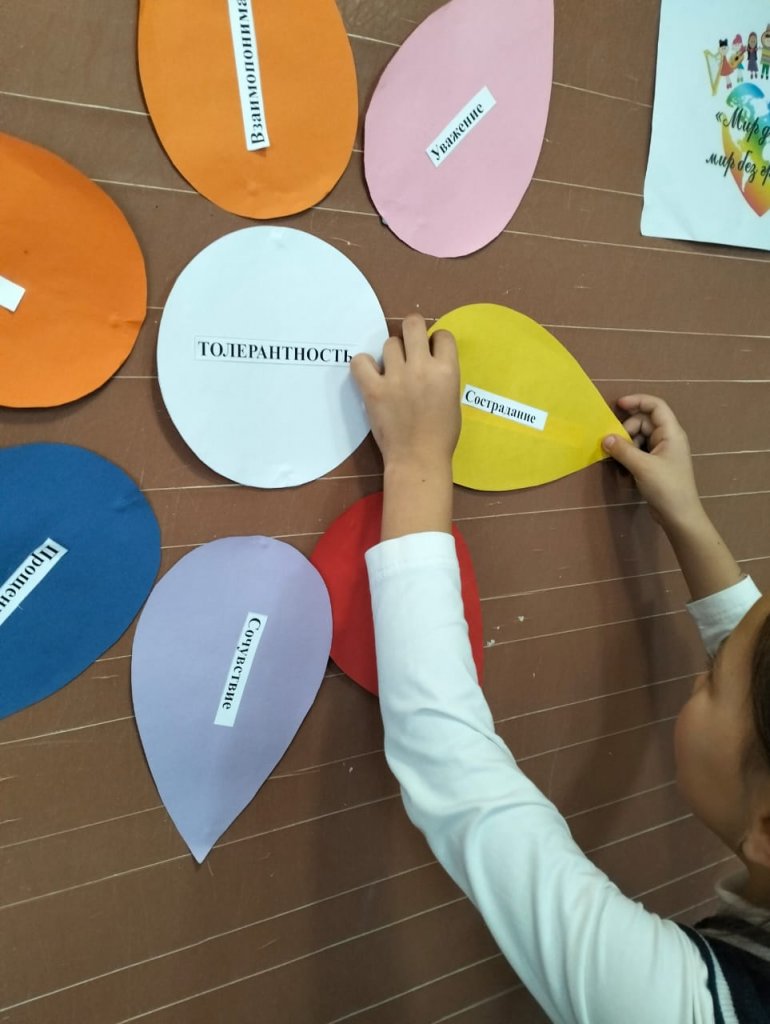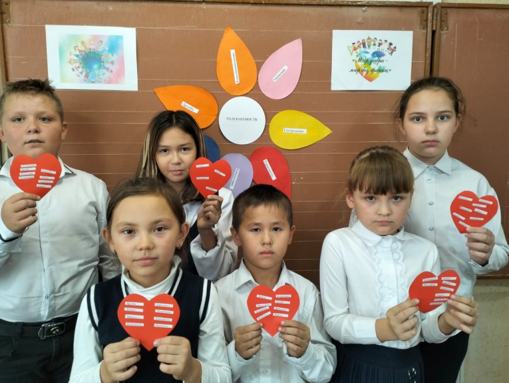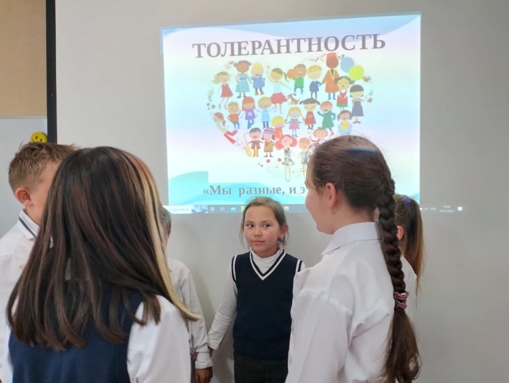 3-сыныпта "біз өте өзгелерміз , бірақ бізде бір әлем бар"атты сынып сағаты өтті. Мақсаты: сыпайылық, адамдарға деген құрмет, зейінділік, игі істер жасауға ұмтылу, жеке тұлғаға деген толерантты және сыйластық қатынасты қалыптастыру сияқты қасиеттерді тәрбиелеу.