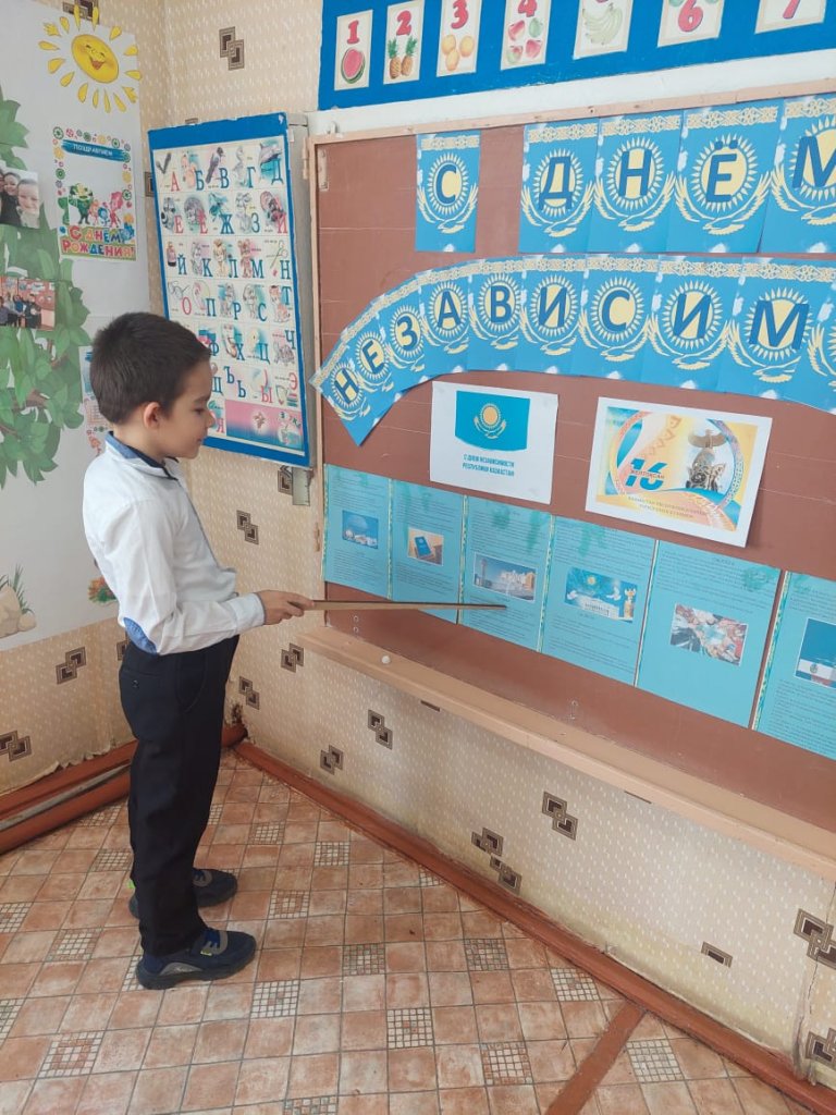 2-сыныпта ҚР Тәуелсіздік күніне арналған "Тәуелсіз Қазақстан"сынып сағаты өтті. Мақсаты: Отанға, әдет-ғұрыпқа, салт-дәстүрге деген сүйіспеншілік пен құрмет сезімін тәрбиелеу. Әр түрлі ұлт өкілдері арасындағы достық қарым-қатынас.